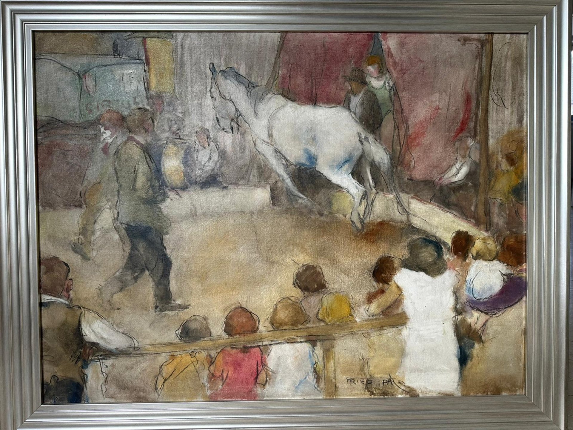 A theatrical composition by Pál Fried, Circus captures the dynamism of performance through structured figuration and compositional movement.